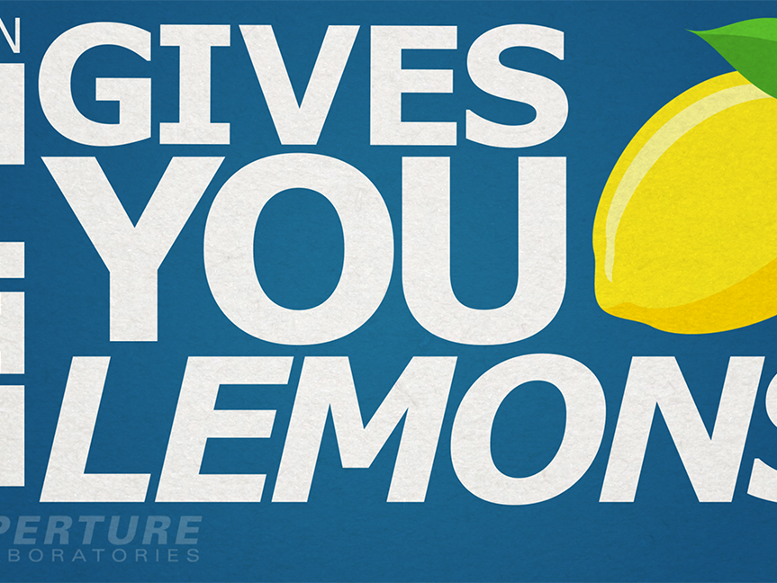A kinetic type animation of Cave Johnson's rant about lemons. A beautiful combination of dramatic typography and 'snappy' animation.
